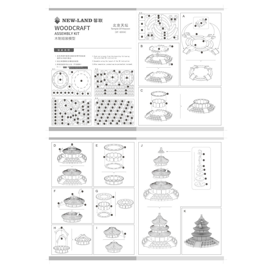 Temple of Heaven Beijing – 3D Stereoscopic Puzzle in Color Box, Laser-Cut DIY Craft Drawing Download